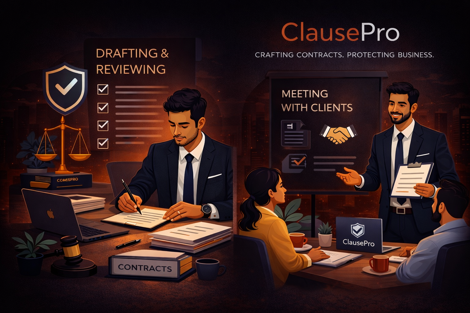 Win clients with confidence and deliver with protection. From proposals and contracts to invoices and payments — ClausePro ensures every step is legally secure.